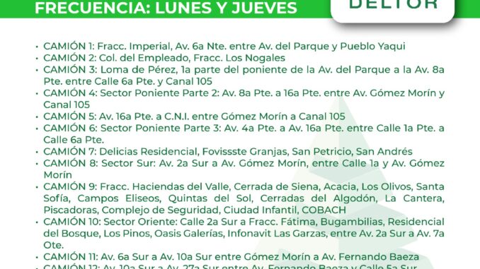 Anuncia Deltor rutas de recolección y llama a ciudadanía a estar pendiente – EL PIONERO