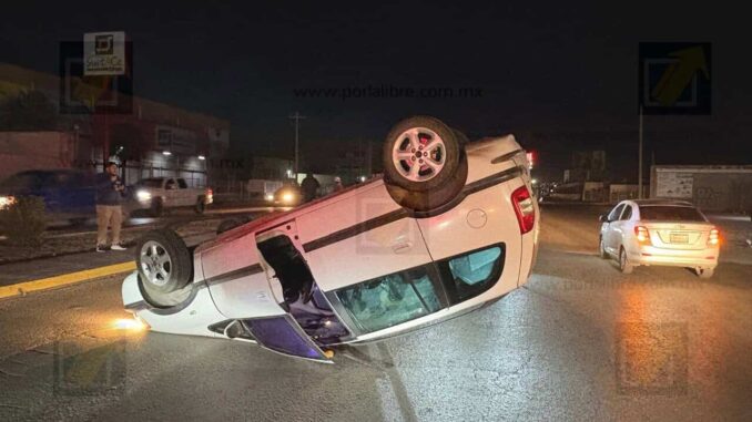 Chihuahua.- Una volcadura registrada en el cruce de Juan Pablo II e Industrial 10 generó una fuerte movilización de cuerpos de emergencia luego de que una camioneta impactara contra el camellón y quedara con las llantas hacia arriba en sentido contrario a la circulación.