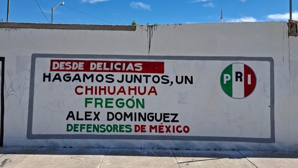 En distintos puntos de la ciudad de Delicias comenzaron a aparecer bardas con la frase “Hagamos juntos un Chihuahua fregón”, acompañadas del nombre de Álex Domínguez, presidente del Comité Directivo Estatal del Partido Revolucionario Institucional y diputado federal, así como del logotipo del partido.