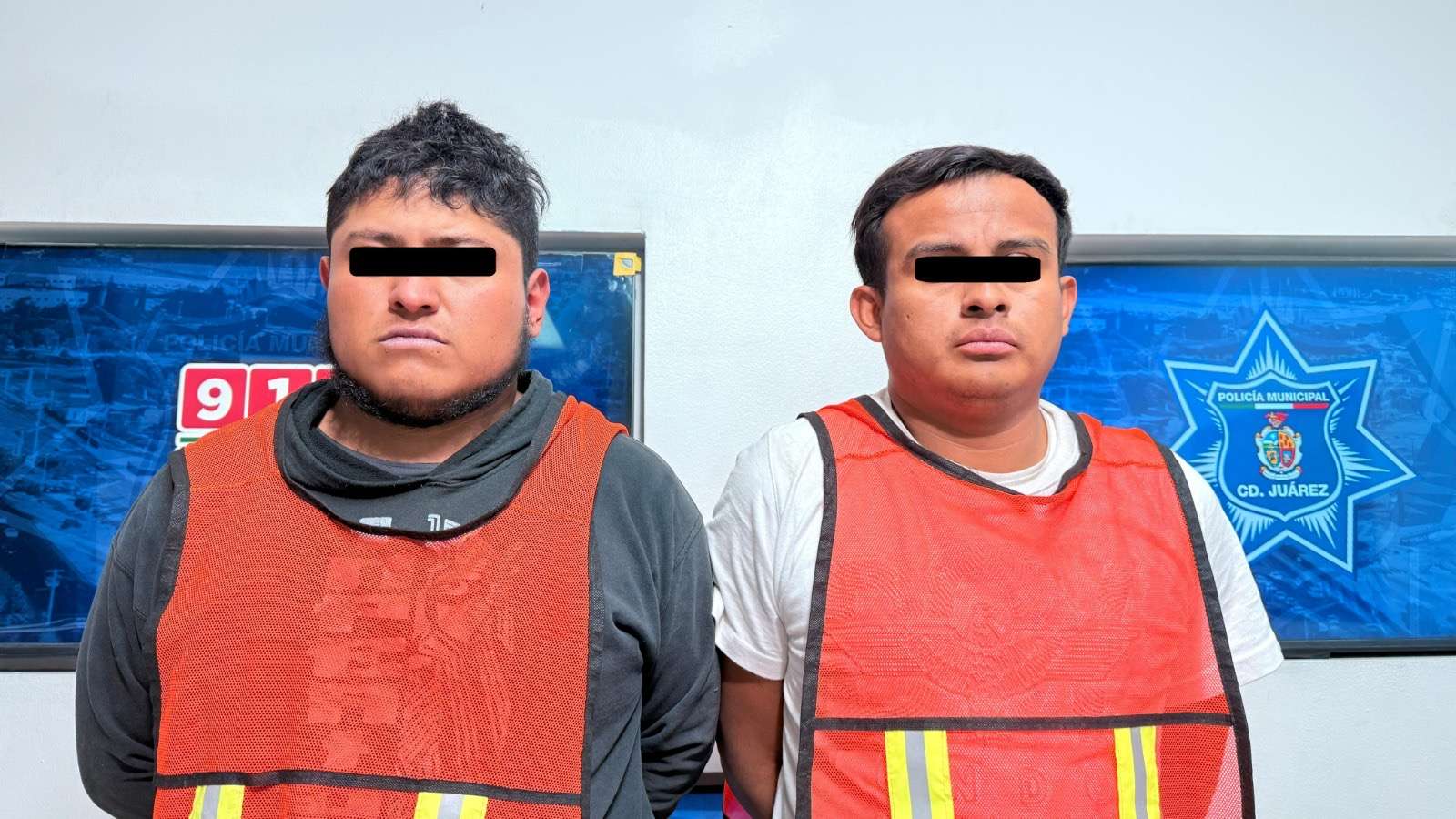 Ciudad Juárez.- Elementos de la Secretaría de Seguridad Pública Municipal, adscritos a la Estación de Policía del Distrito Riveras, arrestaron a Guillermo R. R. y Daniel Rafael R. A., por su presunta responsabilidad en la comisión de delitos contra la ley federal de armas de fuego y explosivos.