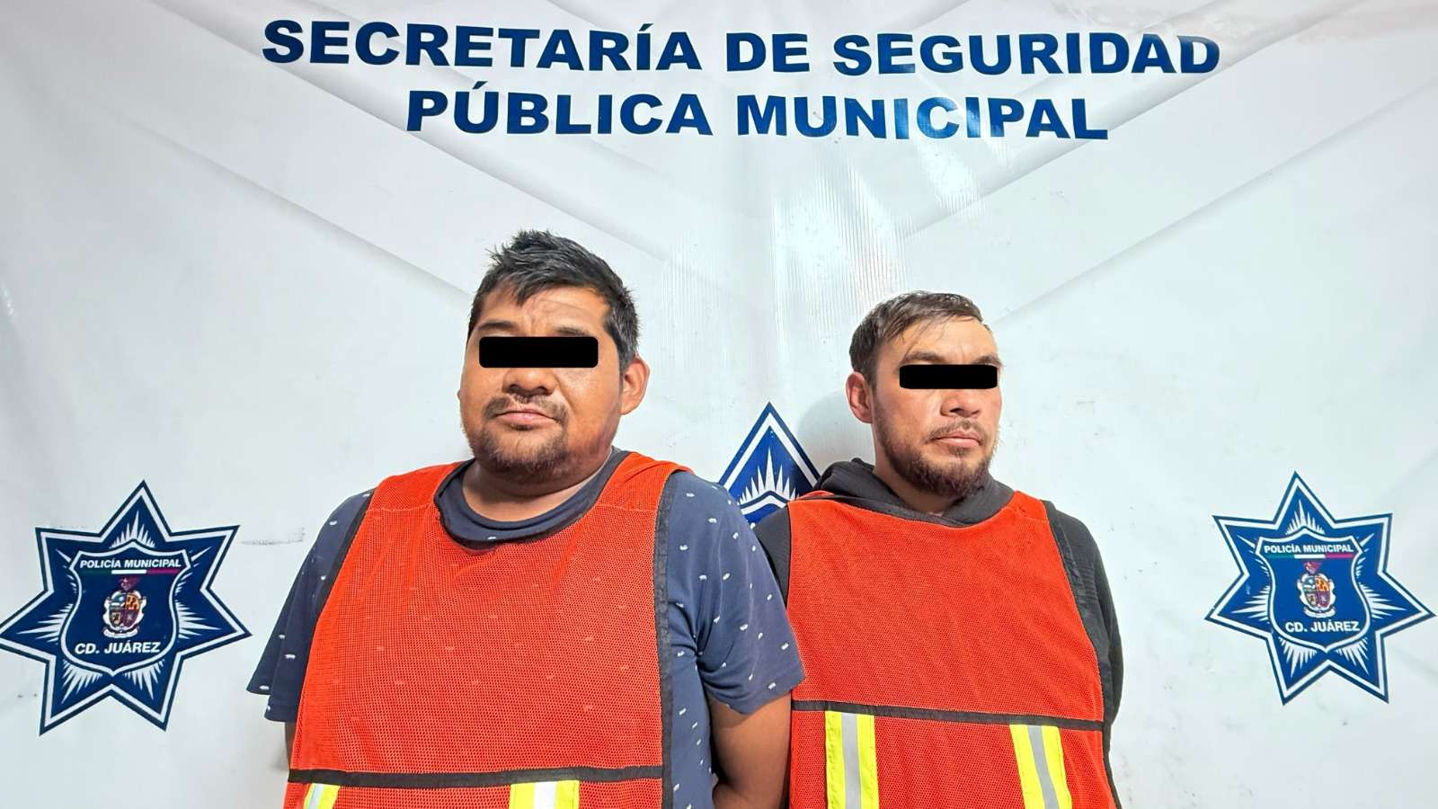 Ciudad Juárez.- Elementos de la Secretaría de Seguridad Pública Municipal arrestaron a Irvin S. C. y Juan Samuel L. A., por su presunta responsabilidad en la comisión de delitos contra la ley federal de armas de fuego y explosivos y amenazas.