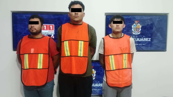 Ciudad Juárez.- Elementos de la Secretaría de Seguridad Pública Municipal arrestaron a Kevin C. S., Cristian Alejandro R. O. y Darwin Alexis Z. A., por su presunta responsabilidad en la comisión de delitos contra la salud, mismos que serán investigados por realizar grafitis.
