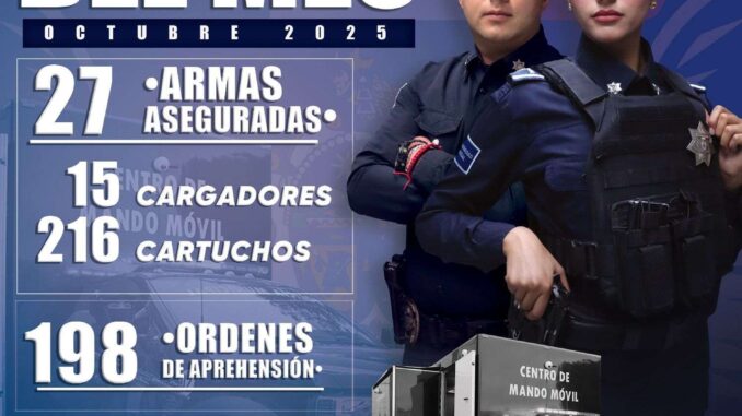 .- La Secretaría de Seguridad Pública Municipal dio a conocer que durante el mes de octubre del presente año fueron aseguradas 27 armas de fuego de distintos calibres, como resultado de diversas intervenciones y operativos especiales realizados en la ciudad.