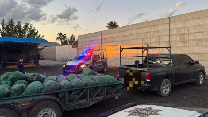 Los hechos ocurrieron durante la tarde de este viernes 24 de octubre, cuando durante un recorrido de prevención y vigilancia sobre la Avenida Central en la colonia Víctor Rosales, los oficiales detectaron un vehículo Chevrolet Silverado color guinda, con placas del estado de Chihuahua, el cual remolcaba una traila con lo que parecía ser nuez.