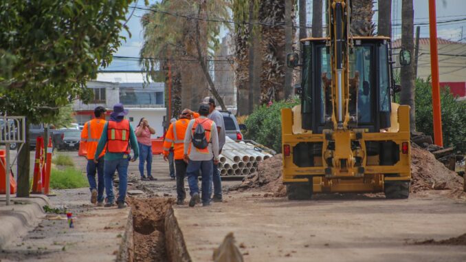 La Dirección de Obras Públicas de Delicias informó que continúan los trabajos de rehabilitación integral en la avenida Carlos Blake, obra que contempla la sustitución de las redes de agua, drenaje, alumbrado público y la mejora de los camellones centrales.