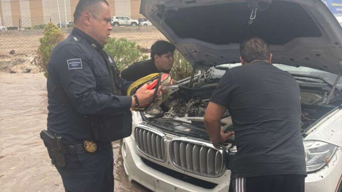 Ciudad Juárez.- Policías Municipales continúan realizando apoyos ciudadanos durante esta tarde y noche, a causa de las lluvias que se están presentando.