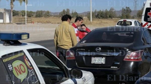 Paramédicos de la Cruz Roja Mexicana delegación Delicias llegaron para valorar a una mujer que señaló malestar físico luego del choque, tras la revisión correspondiente se determinó que no presentaba lesiones y que no existía riesgo para su integridad, permitiendo continuar con las maniobras en el sitio.