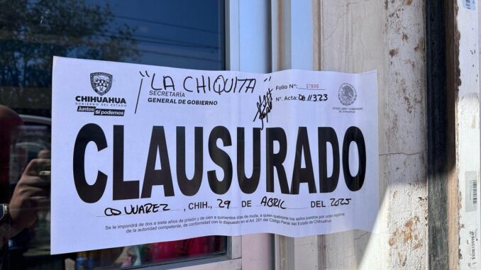 Estas revisiones dieron como resultado un total de 23 clausuras en la entidad: 4 en Chihuahua, 2 en Cuauhtémoc, 1 en Delicias, 1 en Meoqui, 1 en Saucillo y 14 en Ciudad Juárez.