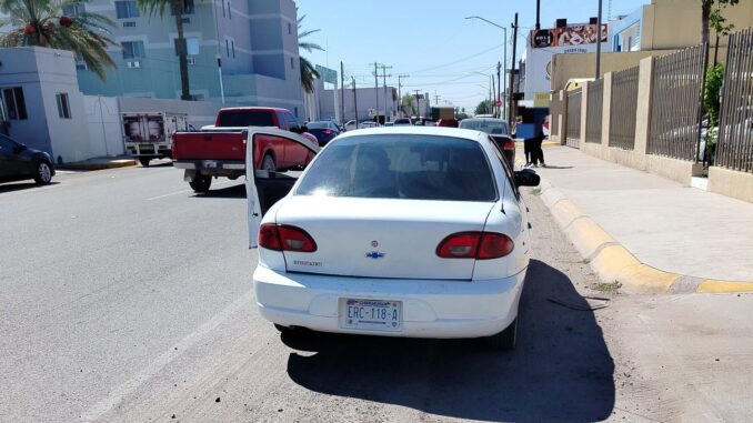 Un conductor imprudente puso en riesgo la vida de un motociclista en el sector oriente de Delicias, pues según el relato del afectado, el conductor de un Chevrolet Cavalier blanco, circulaba de poniente a oriente sobre la calle Séptima y no respetó el alto en el cruce con la Avenida Sexta, lo que provocó que el motociclista tuviera que maniobrar para evitar el impacto.