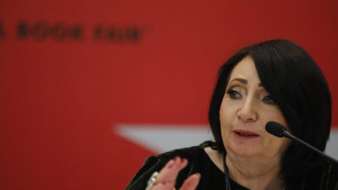 La directora general de la FIL, Marisol Schulz Manau, habla durante rueda de prensa este domingo durante la 39 edición de la Feria Internacional del Libro de Guadalajara (FIL), en Jalisco (México). EFE/Francisco Guasco