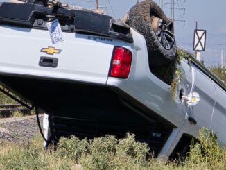 Al lugar acudieron unidades del Departamento de Vialidad, donde se localizó un vehículo tipo pick up, marca Chevrolet, modelo 1997, color gris y con placas de circulación del Estado de Chihuahua, el cual se encontraba dentro de una sequía de riego tras haber salido del camino.