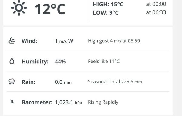 Asimismo se dio a conocer que en el transcurso del día se espera que la temperatua alcance hasta los 24° Celsius, mientras que para mañana domingo la minima se espera de 11° y la máxima de 27°.