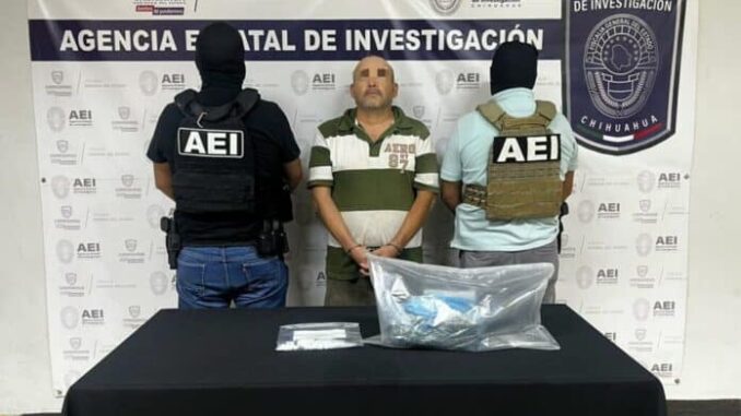 Elementos de la Agencia Estatal de Investigación del Centro de Operaciones Estratégicas de la Fiscalía de Distrito Zona Norte, detuvieron en flagrancia a quien se identificó como Tomás Alonso V. S., por encontrarse en posesión de drogas en la colonia Hacienda de las Torres, de Ciudad Juárez.