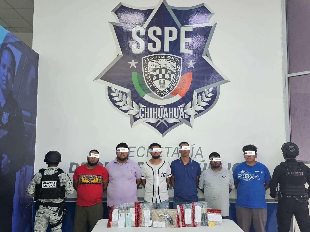Ciudad Juárez.- Elementos del Grupo Especial de Detectives de la Secretaría de Seguridad Pública del Estado (SSPE), en coordinación con la Guardia Nacional, lograron la detención de seis personas señaladas por la presunta comisión del delito de privación ilegal de la libertad.