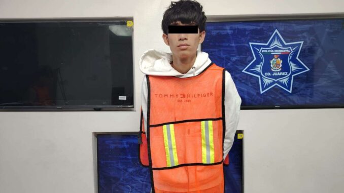 Ciudad Juárez .- Elementos de la Secretaría de Seguridad Pública Municipal arrestaron a Uriel Eduardo U. R. y un adolescente de 17 años, por su presunta responsabilidad en la comisión de delitos contra la salud, mismos que serán investigados por varios robos a comercio.