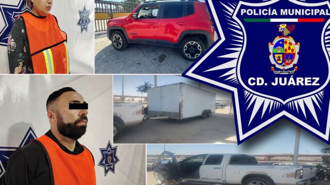 Ciudad Juárez -. Elementos de la Secretaría de Seguridad Pública Municipal arrestaron a dos personas, por su presunta responsabilidad en la comisión del delito de posesión de vehículo con reporte de robo en hechos distintos.