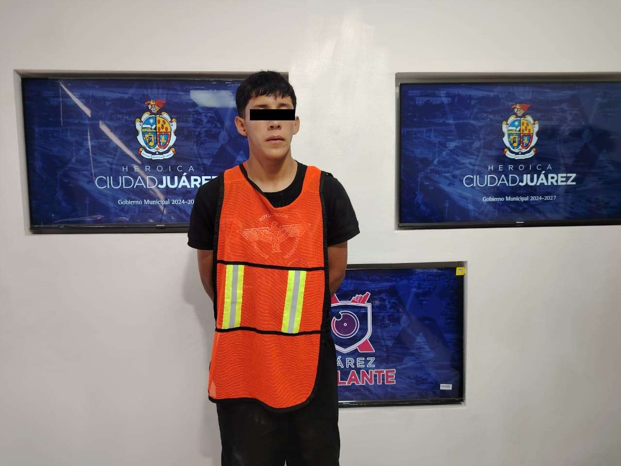Ciudad Juárez.- Agentes de la Secretaría de Seguridad Pública Municipal adscritos al Distrito Poniente, detuvieron a Eleazar A. F. y un adolescente, por su presunta responsabilidad en la comisión del delito de robo a transeúnte con violencia en grado de tentativa.