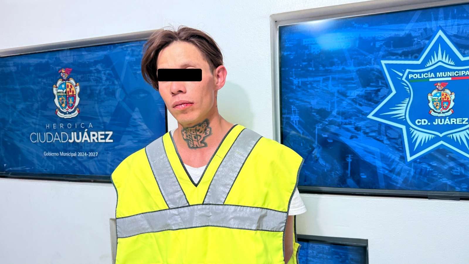 Ciudad Juárez.- Elementos de la Secretaría de Seguridad Pública Municipal, adscritos a la Estación de Policía del Distrito Sur, arrestaron a Félix Omar M. F. y a un adolescente, por su presunta responsabilidad en la comisión del delito de daños, amenazas y/o lo que resulte.