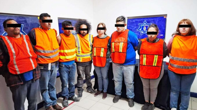 Previa lectura de derechos, Miguel Alberto M. M. de 43 años, José Francisco A. A. de 40 años, Luis Fernando A. A. de 28 años, Manuel Abraham V. G. de 32 años, Ana Cristina G. G. de 35 años, Berenice C. S. de 27 años, Luisa Alejandra A. H. de 38 años, Yulianna Gabriela C. de 18 años y un adolescente de 17 años, fueron puestos a disposición de la autoridad correspondiente por su presunta responsabilidad en la comisión de los delitos antes mencionados.