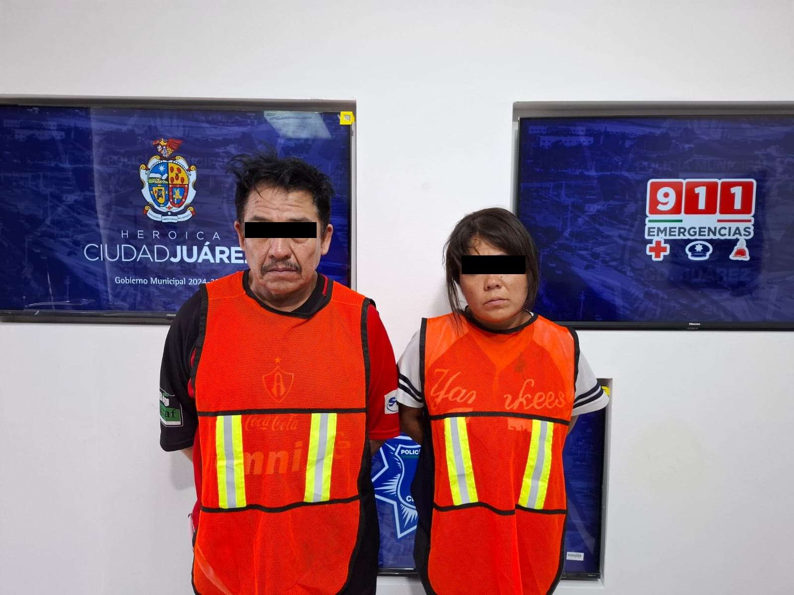 Ciudad Juárez.- Agentes de la Secretaría de Seguridad Pública Municipal capturaron a Adrian G. R. y Sandra Jessica E. por su presunta responsabilidad en la comisión de delitos contra la salud y violación a la ley federal de armas de fuego y explosivos.