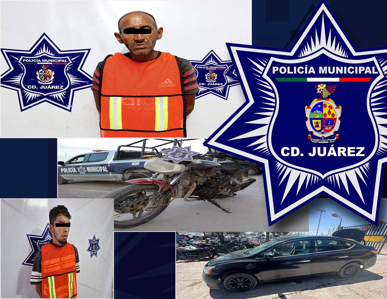 Ciudad Juárez .- Elementos de la Secretaría de Seguridad Pública Municipal arrestaron a dos personas por su presunta responsabilidad en la comisión del delito de posesión de vehículo con reporte de robo en hechos distintos.
