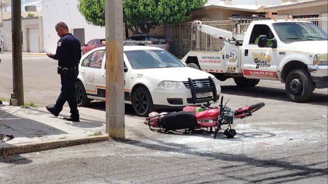 La tarde de este lunes se registró un aparatoso accidente vial en el sector norte de la ciudad de Delicias, donde dos jóvenes menores de edad que viajaban a bordo de una motocicleta resultaron lesionados, lo anterior, ocurrió sobre la calle 17 y media en su cruce con la avenida Carlos Blake, lo que generó la rápida movilización de los cuerpos de auxilio, incluido el arribo de una ambulancia de la Cruz Roja Mexicana.