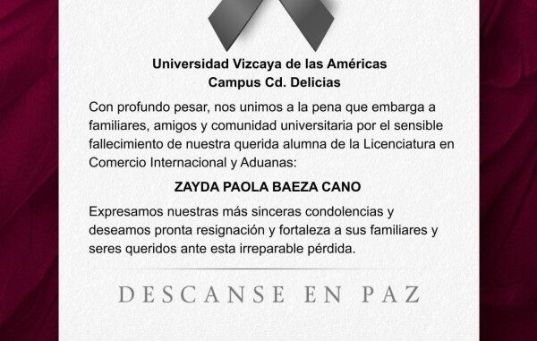 A través de redes sociales, la comunidad educativa y ciudadanos en general expresaron mensajes de despedida y condolencias tras confirmarse el fallecimiento de una joven estudiante de la Universidad Vizcaya de las Américas, Campus Delicias, hecho que generó consternación en el ámbito académico local.