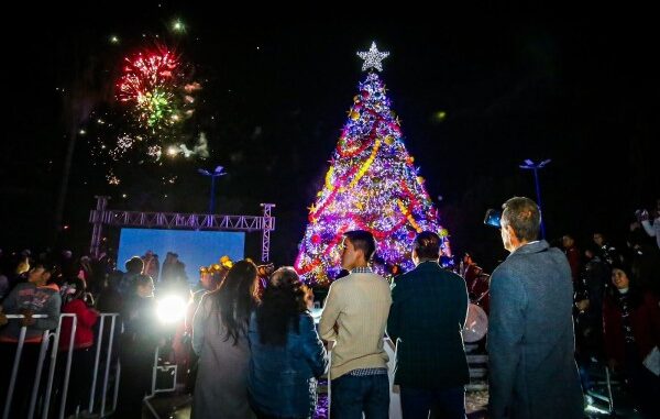 Las celebraciones continuaron hasta llegar a las 8 de la noche, cuando un llamativo flash mob sorprendió al público. Un guitarrista abrió la escena para dar paso al inicio formal de la ceremonia de encendido. En este momento especial participaron el Coro de la Ciudad, la Orquesta Infantil y Juvenil, así como la Marching Band de la Preparatoria Albert Einstein 2030, quienes sumaron al ambiente con su talento y energía.