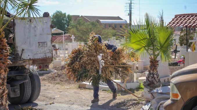 Con motivo de los próximos festejos del Día 2 de noviembre, el Gobierno Municipal de Delicias, a través de la Dirección de Servicios Públicos, puso en marcha un operativo especial de mantenimiento y limpieza en los siete panteones municipales, con el propósito de que estos espacios estén en óptimas condiciones para recibir a las familias que acuden a rendir homenaje a sus seres queridos.