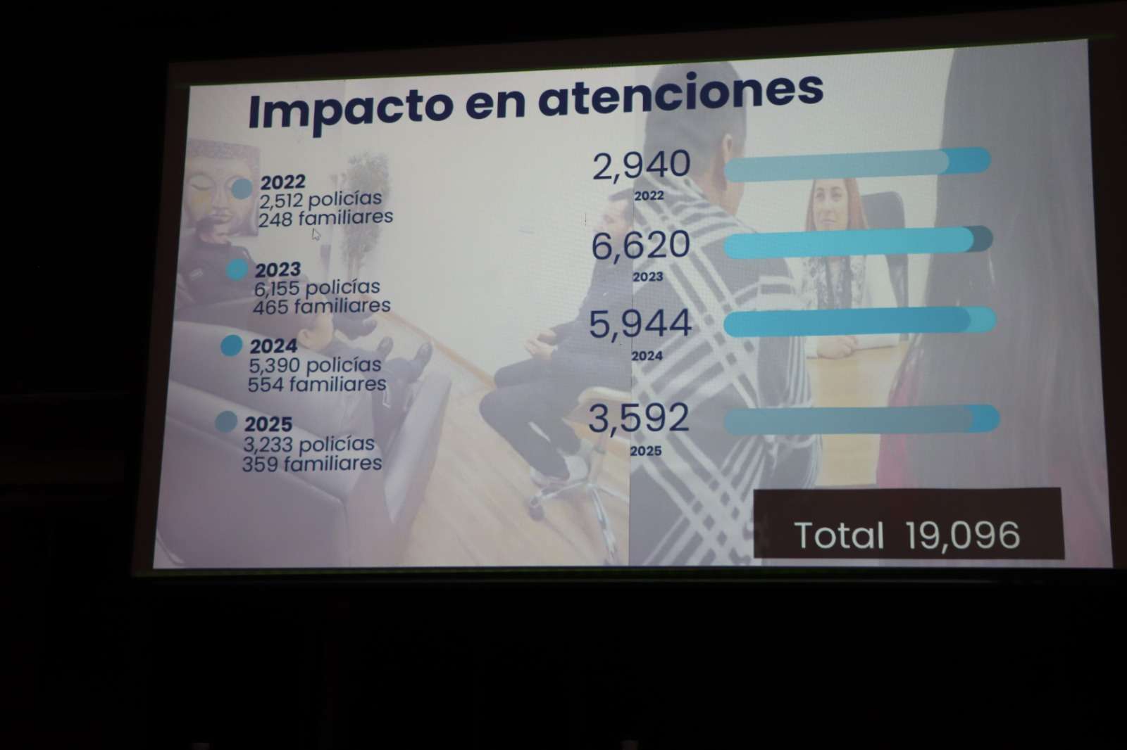 Enfatizó que, de enero de 2022 a mayo del presente año se han realizado 19 mil 96 atenciones de policías municipales y sus familias, con el objetivo de garantizar la salud mental de los elementos y sus familiares.