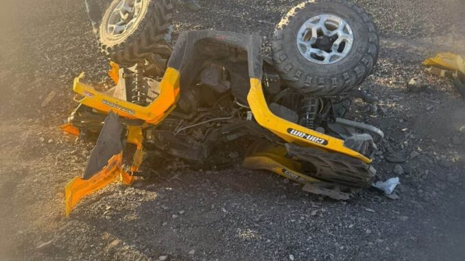 Al acudir las autoridades encontraron una cuatrimoto marca CanAm amarilla volcada y un vehículo Jetta blanco con daños en uno de los costados y en una parte frontal.