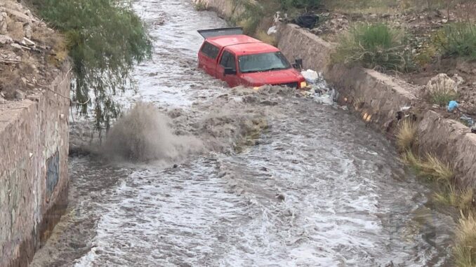 Chihuahua.- Un hombre que se encontraba dentro del cauce del arroyo El Mimbre fue sorprendido por una súbita crecida del agua mientras realizaba labores de recolección de materiales. El individuo, a bordo de una camioneta Ford tipo pick up, se dedicaba a extraer diversos objetos del interior del canal con la intención de venderlos posteriormente.
