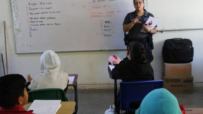 La oficial Isabel Meléndez, instructora del programa, informó que estas actividades se realizan por instrucción del alcalde Jesús Valenciano García y bajo la dirección del policía primero Raymundo González, con el objetivo de fortalecer la prevención entre niñas, niños y adolescentes.