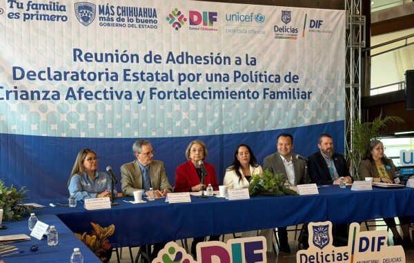 Delicias fue sede de la adhesión a la Declaración Estatal por una política de crianza afectiva y fortalecimiento familiar, en un evento encabezado por la presidenta estatal del DIF Estatal Chihuahua, María Eugenia Galván Antillón, así como representantes de UNICEF y presidentes de los sistemas DIF de 14 municipios de la región.