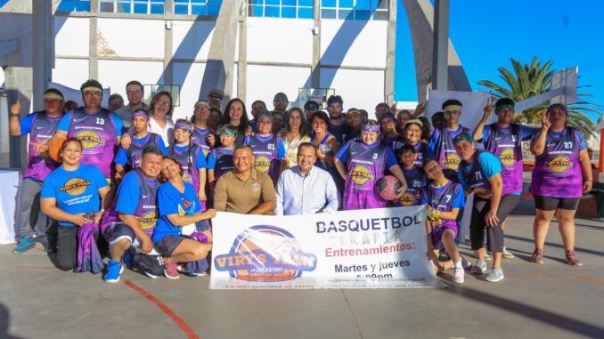Con el propósito de fomentar el deporte y abrir espacios para la inclusión, el presidente municipal Jesús Valenciano García, acompañado del presidente del Consejo Municipal de Estacionómetros, Mariano Jáquez, encabezó la entrega simbólica de uniformes deportivos al equipo de basquetbol VIRYS Team.