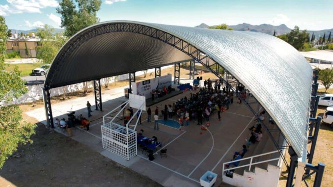 Chihuahua .- El alcalde Marco Bonilla acudió a la escuela primaria Tarahumara para inaugurar un domo construido gracias al programa de Infraestructura Educativa, donde participan el Gobierno del Estado, la Fundación del Empresariado Chihuahuense (FECHAC) y Gobierno Municipal; además, se realizó la entrega del programa Mi Bolsa Escolar para que las y los niños cuenten con mochilas y útiles escolares como parte de este regreso a clases.