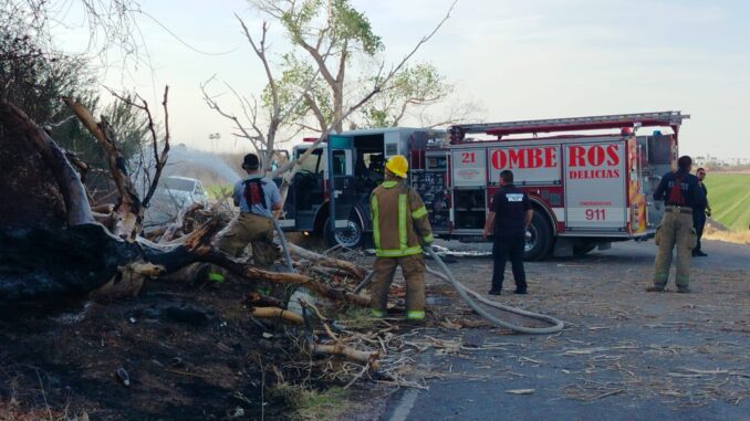 El incidente ocurrió en un camino ubicado a espaldas de la colonia Vicente Guerrero, donde un árbol se encontraba incendiándose a un costado de una curva pronunciada y debilitarse su base, el tronco terminó por caer, obstruyendo el paso de los vehículos, por lo que ante la situación, ciudadanos realizaron el reporte al sistema de emergencias 911, solicitando apoyo inmediato.