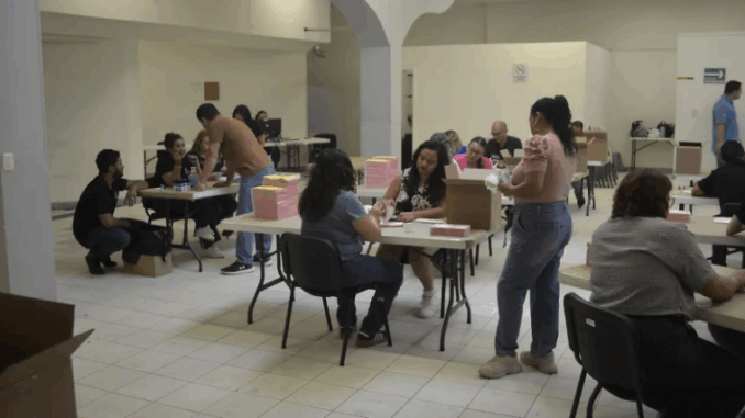 Este jueves, comenzó la labor ardua del conteo, sellado y enfajillado de las 919 mil 525 boletas de la elección judicial en las instalaciones de la Asamblea Distrital del Instituto Estatal Electoral en Delicias, donde se implementaron tres turnos de trabajo para terminar a más tardar el domingo.