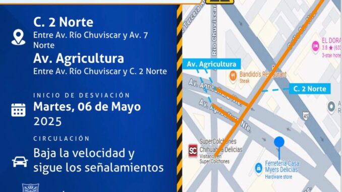 El Gobierno Municipal de Delicias, a través de la Dirección de Obras Públicas, dio a conocer el arranque de trabajos de rehabilitación vial en dos tramos de la ciudad: la Calle 2 Norte, entre avenida Río Chuviscar y avenida 7 Norte, y la avenida Agricultura, entre Río Chuviscar y Calle 2 Norte. Estas acciones forman parte del compromiso por mejorar la infraestructura urbana y ofrecer mayor seguridad a peatones y conductores.