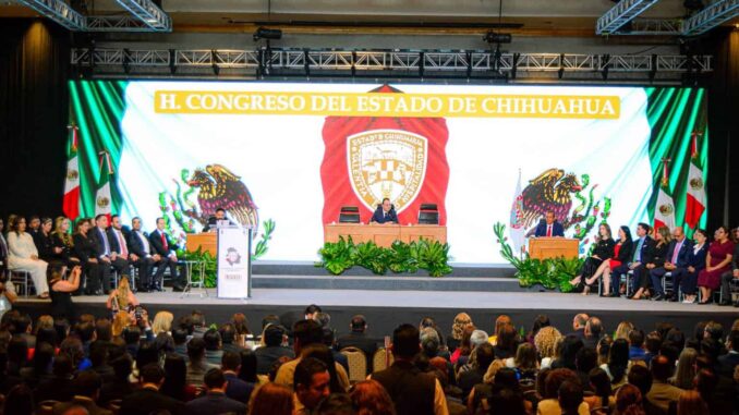 Cabe mencionar que el acto protocolario se llevó a cabo en el Centro de Exposiciones y Convenciones, Expo Chihuahua, toda vez que fue declarado Recinto Oficial del Poder Legislativo.
