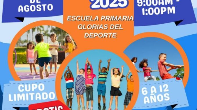 El Gobierno Municipal de Delicias, a través de la Dirección de Desarrollo Humano y Bien Común, invita a las familias a inscribir a sus hijas e hijos en la veraneada organizada por la Mesa de Seguridad de FICOSEC, que se llevará a cabo del 4 al 15 de agosto en la Escuela Primaria Gloria del Deporte. La actividad está dirigida a niños y niñas de entre 6 y 12 años, en un horario de 9:00 a.m. a 1:00 p.m., y es completamente gratuita.