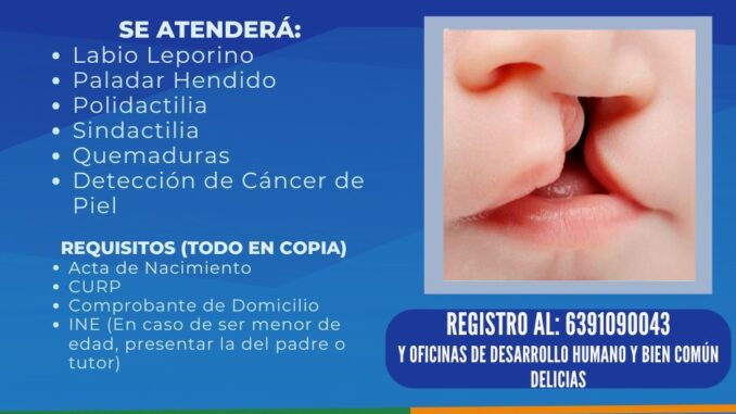 Esta jornada atenderá de manera gratuita padecimientos como labio leporino, paladar hendido, polidactilia (dedos adicionales), sindactilia (dedos unidos), quemaduras, y también ofrecerá detección de cáncer de piel. La iniciativa busca apoyar especialmente a familias de escasos recursos que no cuentan con acceso a estos procedimientos médicos especializados.