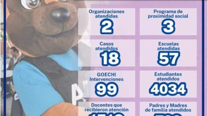 De esta manera, GOECHI estuvo en 57 planteles escolares, y atendió 18 casos, además de realizar 99 intervenciones.