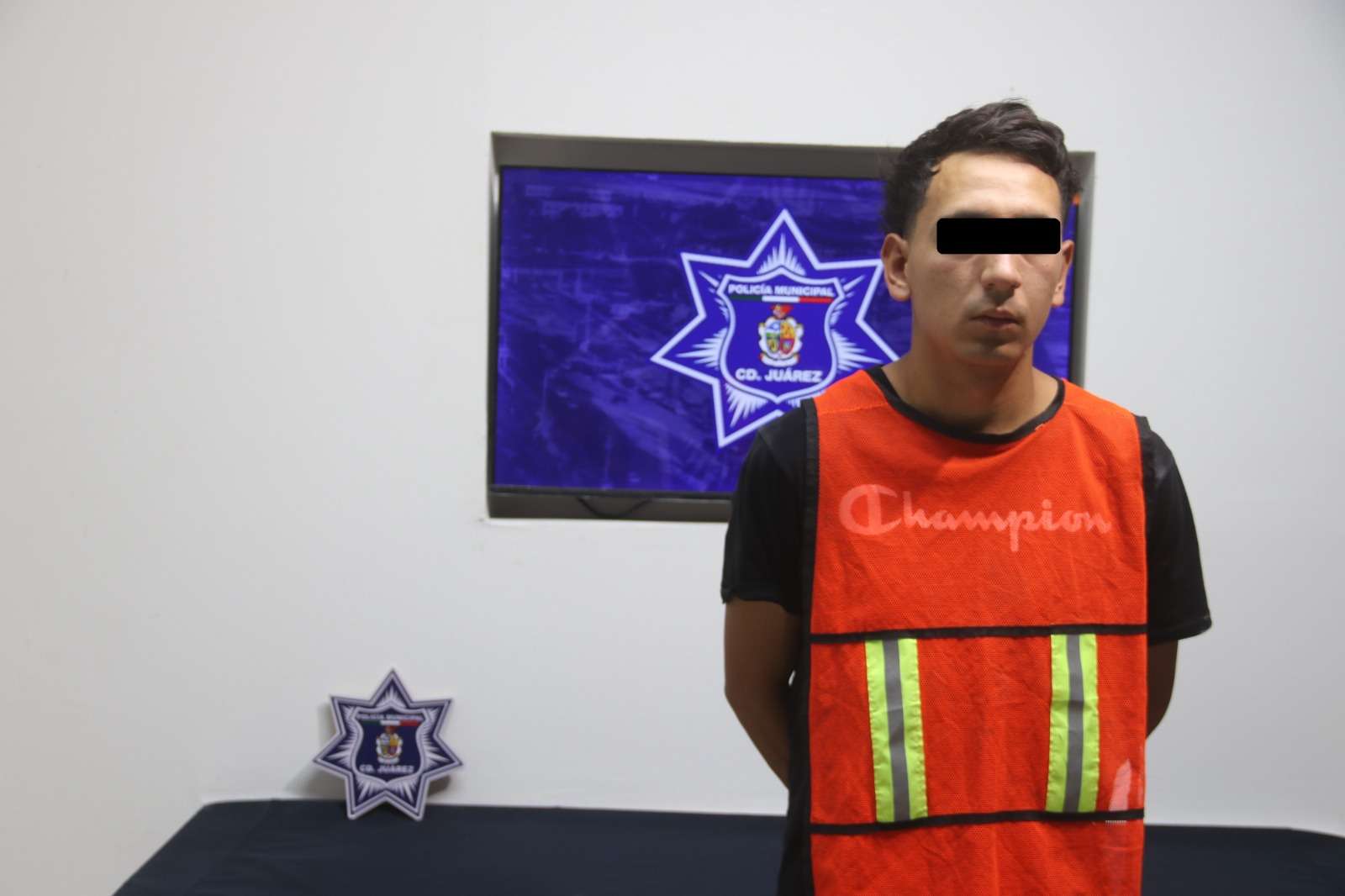 Ciudad Juárez .- Elementos de la Secretaría de Seguridad Pública Municipal arrestaron a Jonathan Yael M. G., por su presunta responsabilidad en la comisión del delito de robo a transeúnte con lujo de violencia.