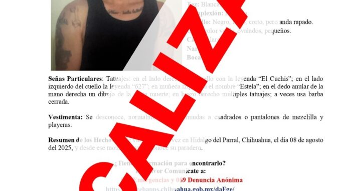 Parral.- Elementos de la Agencia Estatal de Investigación adscritos a la Fiscalía de Distrito Zona Sur, localizaron sano y salvo a Jesús José V. R., persona que contaba con reporte de ausencia interpuesto por sus familiares el 08 de agosto del año en curso en la ciudad de Parral.