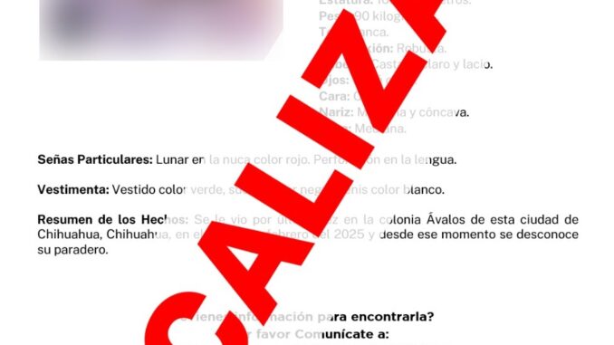El reporte establecía que fue vista por última vez el 28 de febrero del 2025, en la colonia Ávalos, en la ciudad de Chihuahua, siendo localizada en buen estado de salud físico y mental en la colonia Revolución, en la ciudad de Delicias.