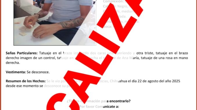 Familiares solicitaron el apoyo de la Unidad Especializada en la Investigación de Personas Ausentes y/o Desaparecidos, luego que de se le viera por última vez el 22 de agosto.