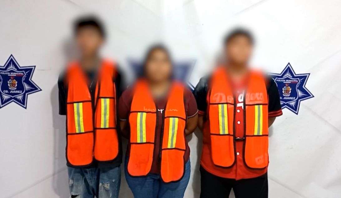 Ciudad Juárez.- Agentes de la Secretaría de Seguridad Pública Municipal arrestaron a Diego Andrés B. G., Ashley Lizeth G. C., Brandon Salvador B. V., y a un adolescente de 16 años, por su presunta responsabilidad en la comisión de delitos contra la salud; mismos que serán investigados por varios asaltos a tiendas de conveniencia.