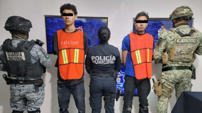 Ciudad Juárez .- Elementos de la Secretaría de Seguridad Pública Municipal del Distrito Centro arrestaron a José Manuel F. A. y Luis Carlos O. M., por su presunta responsabilidad en la comisión del delito de posesión de vehículo con reporte de robo.