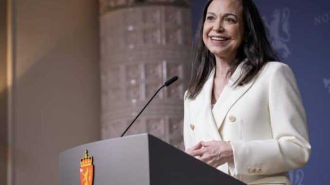 Machado recordó que en octubre dedicó a Trump el Premio Nobel de la Paz que le fue concedido y señaló que tuvo que salir de Venezuela en secreto para viajar a Oslo a recibir el galardón, aunque llegó demasiado tarde para asistir a la ceremonia oficial.